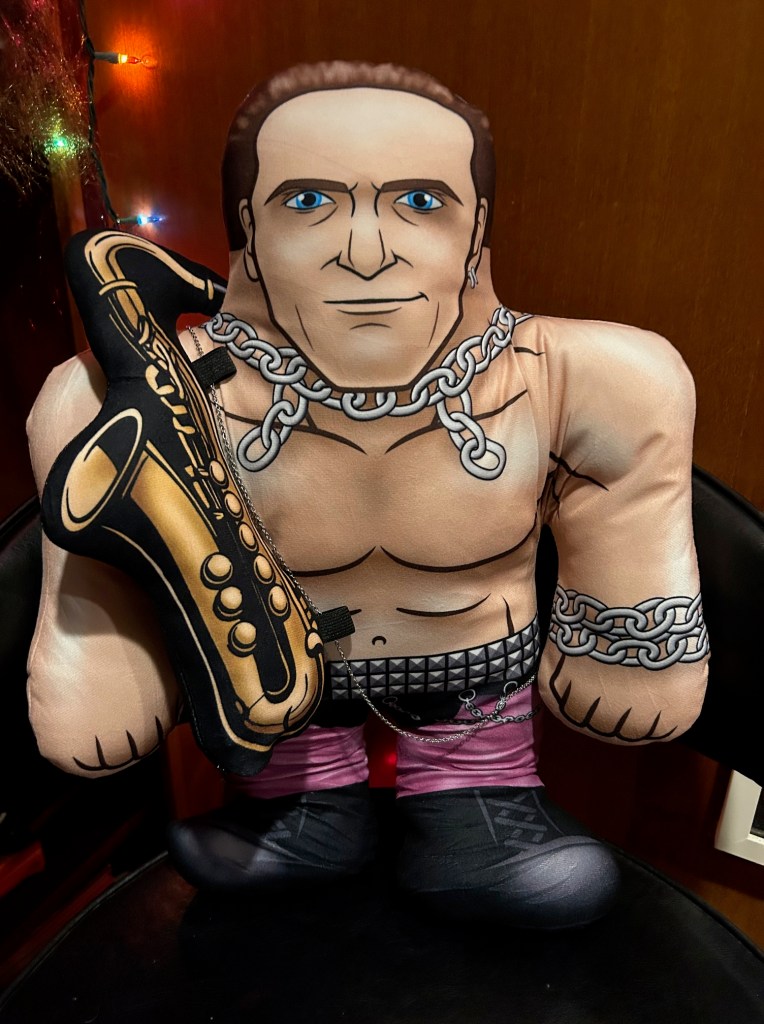 The “I Still Believe” saxophone legend now joins the elite group of superstars — Hulk Hogan, Macho Man, Ultimate Warrior, The Million Dollar Man and boy does he fit right in! The fact that we live in an age where something like this exist is a gift. Never in a million years could I have imagined while watching The Lost Boys as a kid that one day a ‘buddy’ version would be something made available. It’s both head-scratching and incredible. But the best part? The stuffed manimal comes with a saxophone accessory which with a press of a button plays the anthem “I Still Believe”. See video below.