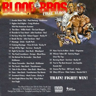 This is the first volume of the Blood Bros – a DJ duo creating mixtapes of the best of 80s action movie soundtracks. More than just a compilation of songs, the mix is 100% designed to follow the course of a film, starting with Training, moving on to the Fight….then finally, celebrating the triumph over the rival. Put this mix on when you are training on the beach, hitting the bag, chopping wood, running up/down a mountain, or generally doing anything which requires involves fierce determination and focus to win. BLOOD BROS! Like all good bad movies……a sequel is almost certain…. BLOOD BROS VOLUME 2 coming SOON.