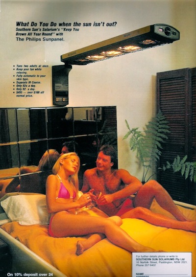 It’s a good thing that the fine experts and engineers at Southern Sun Solariums have created ‘The Philips Sunpanel’, a fully operational solution to your nighttime tanning withdrawals. The Sunpanel easily mounts to any wall and tans two adults at once.