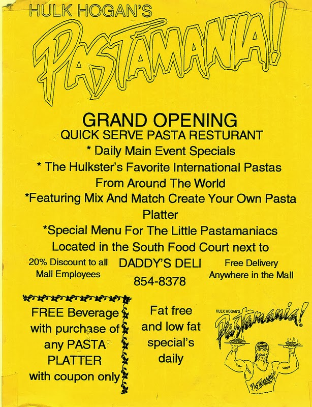 The brief but iconic food court restaurant in Minnesota’s Mall-of-America might be ancient history, but legends never die. Just recently I received a message from a Minnesota native named PJ who actually came across an authentic menu from the grand opening of Hulk Hogan’s Pastamania!