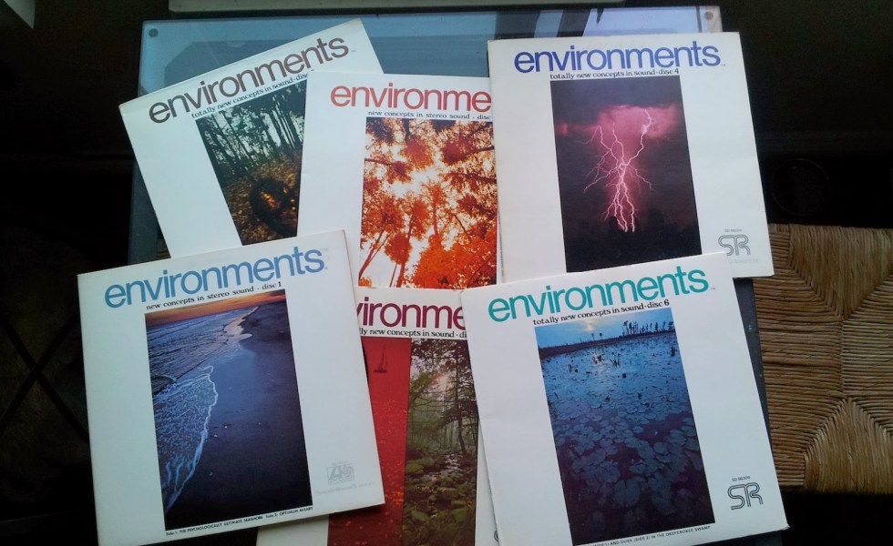 These handsome beauties you’re looking at today are the bulk of a collection called the Environments series, a group of natural sound field recordings released as LPs and cassettes between 1970 – 1979. They range from crickets and bullfrogs in a swamp at dusk to waves crashing on a seashore. If you’re expecting some kind of Tangerine Dream-esque, synth odyssey happening here, you’ll probably be disappointed. These records have no musical accompaniment but can make for a very rewarding experience if played at the right volume and in the correct setting.
