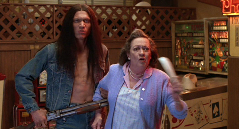 This deadbeat-swine is not only a killer, but a disgrace to his Native American family, tribe, reservation, ancestors and all that stuff. I wonder what Squanto and his gang back in 1619 would have thought of Sam and his salon-quality hair. They’d probably do exactly what Old Chief Woodenhead does to him at the end of the film. Without giving anything away to those of you who STILL haven’t seen Creepshow 2, let’s just say that Sam won’t be “heading” to Hollywood in that Firebird anytime soon.