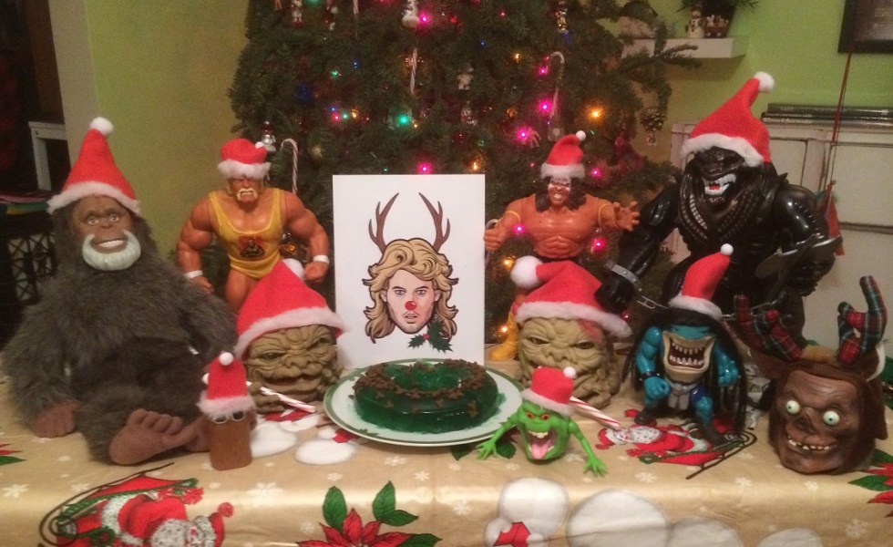 Happy Holidays to you and yours from Uncle T, Harry, Cousin Itt, Drool (Boglin), Hulk Hogan, Ultimate Warrior, Flurp (Boglin), Slimer, Rox (Street Shark), Gorzak and Cryptkeeper!