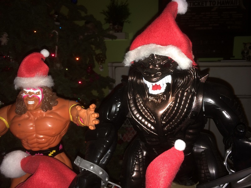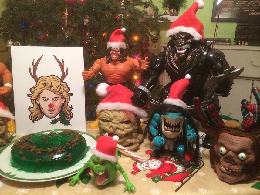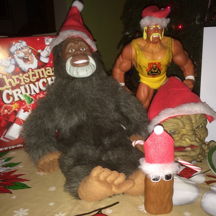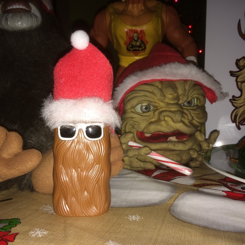 Happy Holidays to you and yours from Uncle T, Harry, Cousin Itt, Drool (Boglin), Hulk Hogan, Ultimate Warrior, Flurp (Boglin), Slimer, Rox (Street Shark), Gorzak and Cryptkeeper!