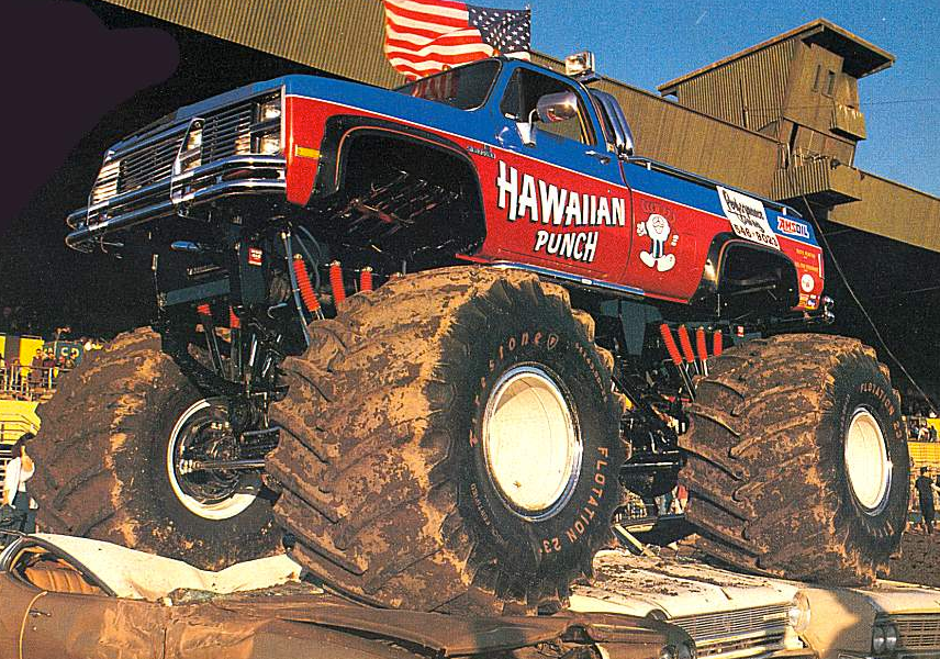 Idea for parents trying to impress their kid with the ultimate birthday surprise…hire the “Hawaiian Punch” Monster Truck to crash the backyard birthday-pizza-party. Make sure he follows strict orders to 1) plow directly through your snobby neighbor’s hydrangea garden, 2) crush the inflatable rental jump-a-roo and 3) completely demolish the above-ground pool. PARTYTIME.