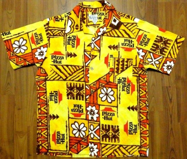 Ah, there’s no better way to celebrate Hawaiian Shirt Friday at the office than donning this tantalizing tropical button-down made by the designer dream team over at Pizza Hut. To accompany this carefree fashion statement, it’s best to display a similar “fuck it all” attitude while wearing it. Consider roller blading into your office Friday morning (at least 2 and a half hours late), balancing a steamy large cheese with one hand and a boom-box blasting David Lee Roth’s “A Lil Ain’t Enough” in the other. Lastly cruise by your bosses’ office and pause, pulling your sunglasses down to give him a viscous eyebrow shake, then keep cruising until you trip and fall face-first into the secretary’s lap between her legs. Cobwebs!