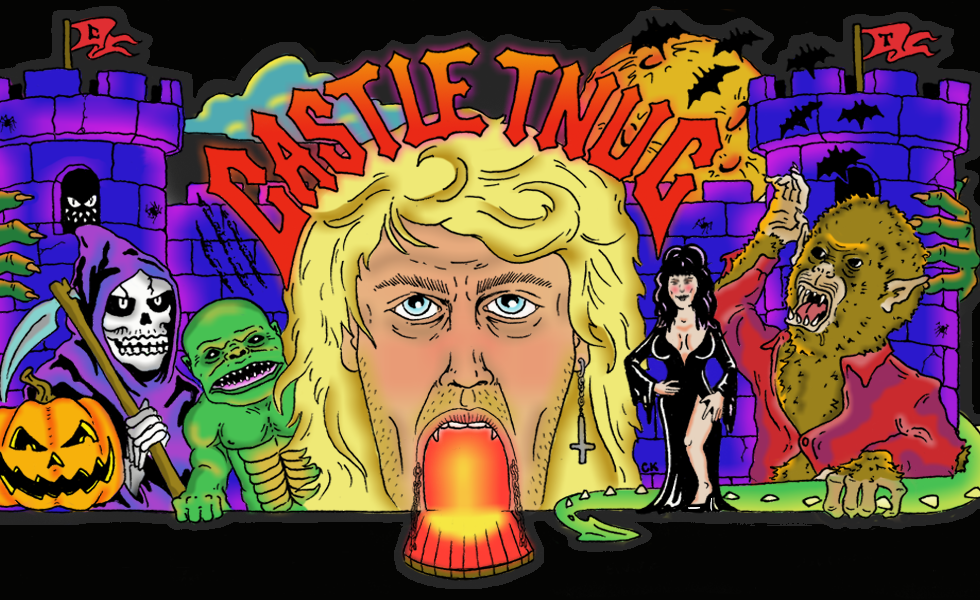 [Calling all deviants, weirdos, freaks, jocks, dweebs, sluts, ghouls and ghoulettes! Welcome to the 2017 TNUC Halloween season! Inspired by carnival funhouses, pretzel dark rides and seedy county fairs, Castle TNUC is a dreamland for anyone who enjoys rubber monsters, hairy beasts and busty boogeybabes. So step right up and get your tickets to Castle TNUC paradise! Pay to get in…PRAY to get out!]