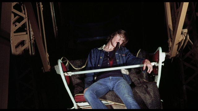 They were shoved aggressively into a mechanical cart that smelled of stale beer and rubber latex. A massive black handlebar came flying down from above and almost decapitated poor Linda (the innocent, presumed-to-be virgin of the group).
