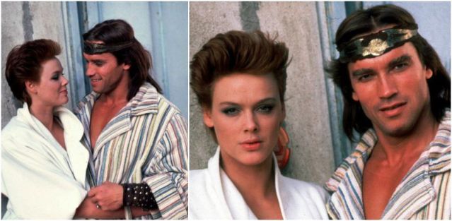 The 6’1″ Danish platinum princess made her on screen debut in 1985 with the fantasy juggernaut Red Sonja, playing the title character in this now-forgotten sword and sorcery action film. Not a very good movie by any means, but still better than 4,000 other far more terrible barbarian movies. Arnold Schwarzenegger co-stars, following the blockbuster success of Conan the Barbarian and Conan the Destroyer. To be honest. the movie has its flaws but is worthy of a revisit even just for the tantalizing visuals of busty nomads and loin cloths galore.