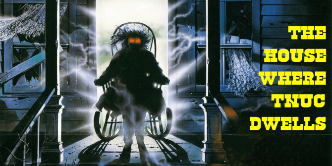 WELCOME TO THE HOUSE WHERE TNUC DWELLS: the moss-covered mansion on the hill with the rusty gates, creaking floorboards, chairs rocking by themselves, cobwebbed chandeliers, billowing curtains, perverted groundskeeper, unidentifiable smells, Elvira cardboard cutouts dancing in the living room (strung up like Kevin did in Home Alone), screams coming from the attic, electric blue lighting coming from the basement bulkhead and a chained up beast in the backyard howling at the moon.