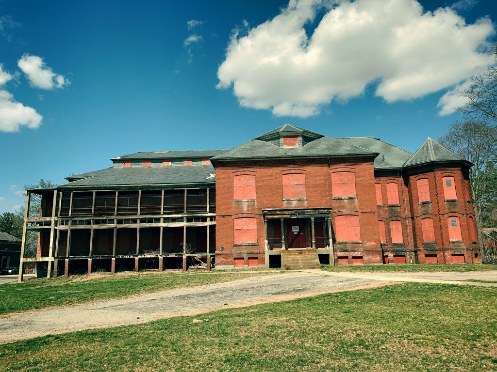 In the town of Medfield, Massachusetts lies a slowly decaying campus of brick buildings that made up what was the Medfield Insane Asylum. The property took 4 years to build and opened in 1896. This hospital was different from many others of its kind because it was constructed to a “cottage plan”, meaning that it would be made up of multiple infirmaries and wards, offing different levels of care instead of just one large one building tending to every patient.