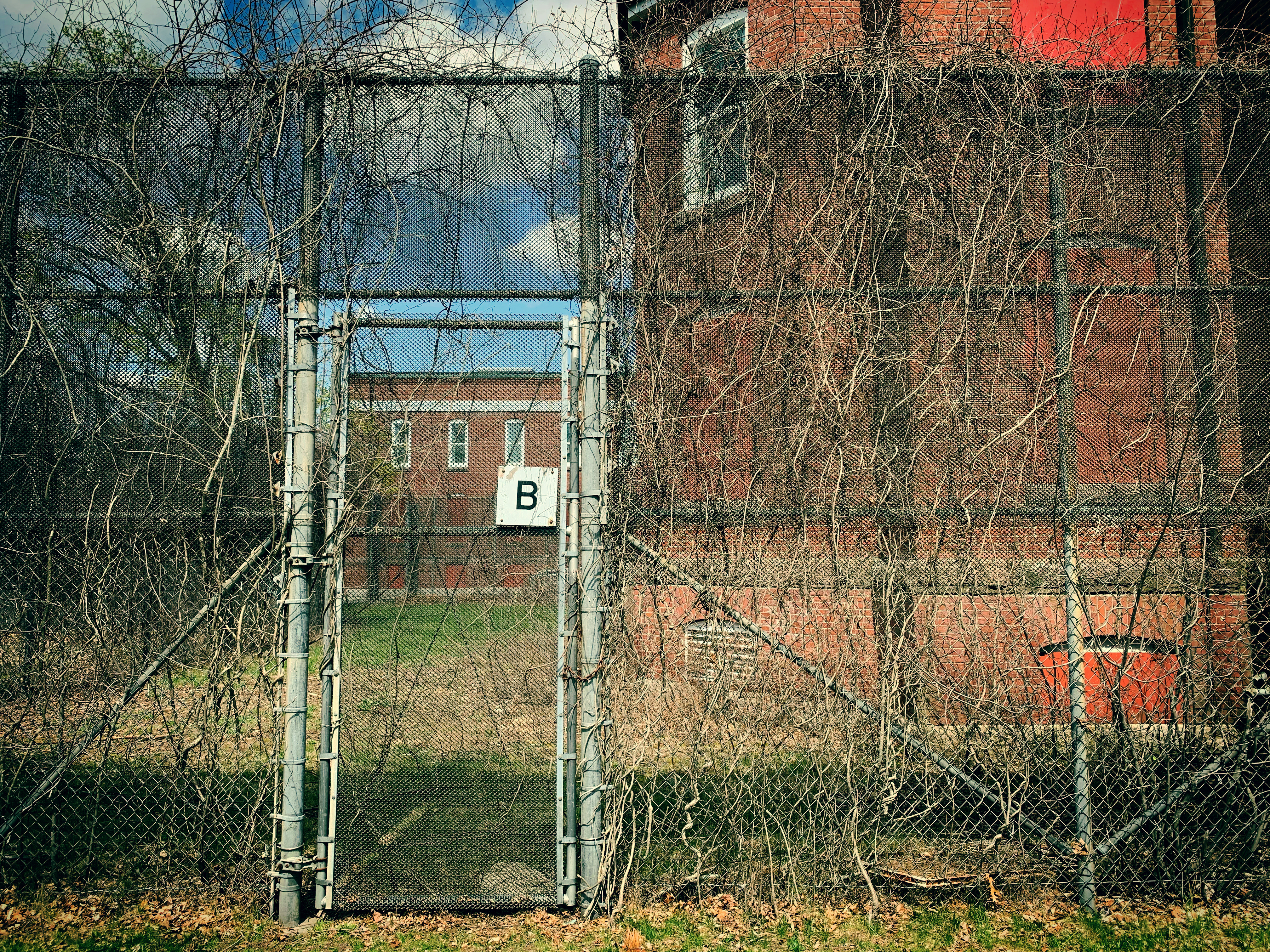 The eerie atmosphere of this place was felt during the entire visit, but never so much as towards the Northern part of the property where we discovered extremely tall, fenced-in areas. This appeared to be an area for patients of the “exited wards” who were not allowed to roam the grounds freely. There were old rotting benches and non-working electrical alarms at the gate entrances.