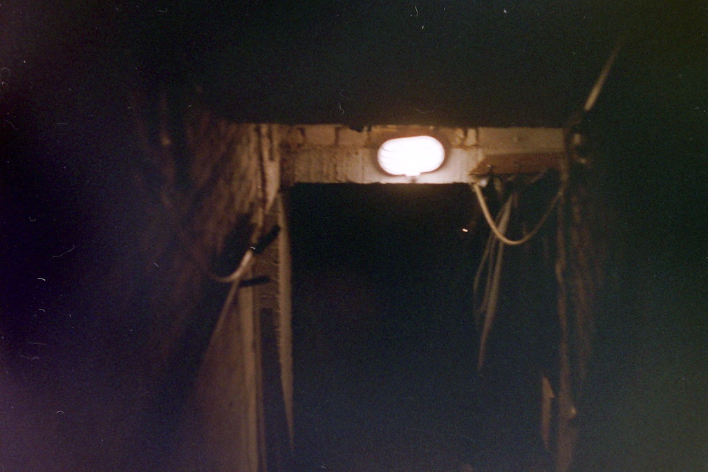 I stood down there for a long time, going through the boxes and marveling at the assorted antiques within. However, as time passed there was a mounting dread slowly accumulating like damp humidity. The air was becoming mustier, moister, thicker. And then I found something that was off. In the dark corner of the cellar, past the oil tank where the light did not reach was an alcove that appeared to be nothing more than a dead spider trap, but as I ran my hand along the cool, damp stones of the wall they suddenly hit splintered wood. I groped around the wood and found a hook lock. I unfastened the hook and pushed open a door. Just then all the remaining light from the room was seemingly sucked into the open doorway like a blackhole. The light whooshed past and briefly illuminated a long hallway in the shape of a T. I could not see around the left and right corners, could not get a sense of how far those hallways went. But against the back wall, right at the epicenter of light with an exposure so high that the image remains burned into my retina to this day was a picture of my father the happiest I had ever seen him. On the day he moved in.