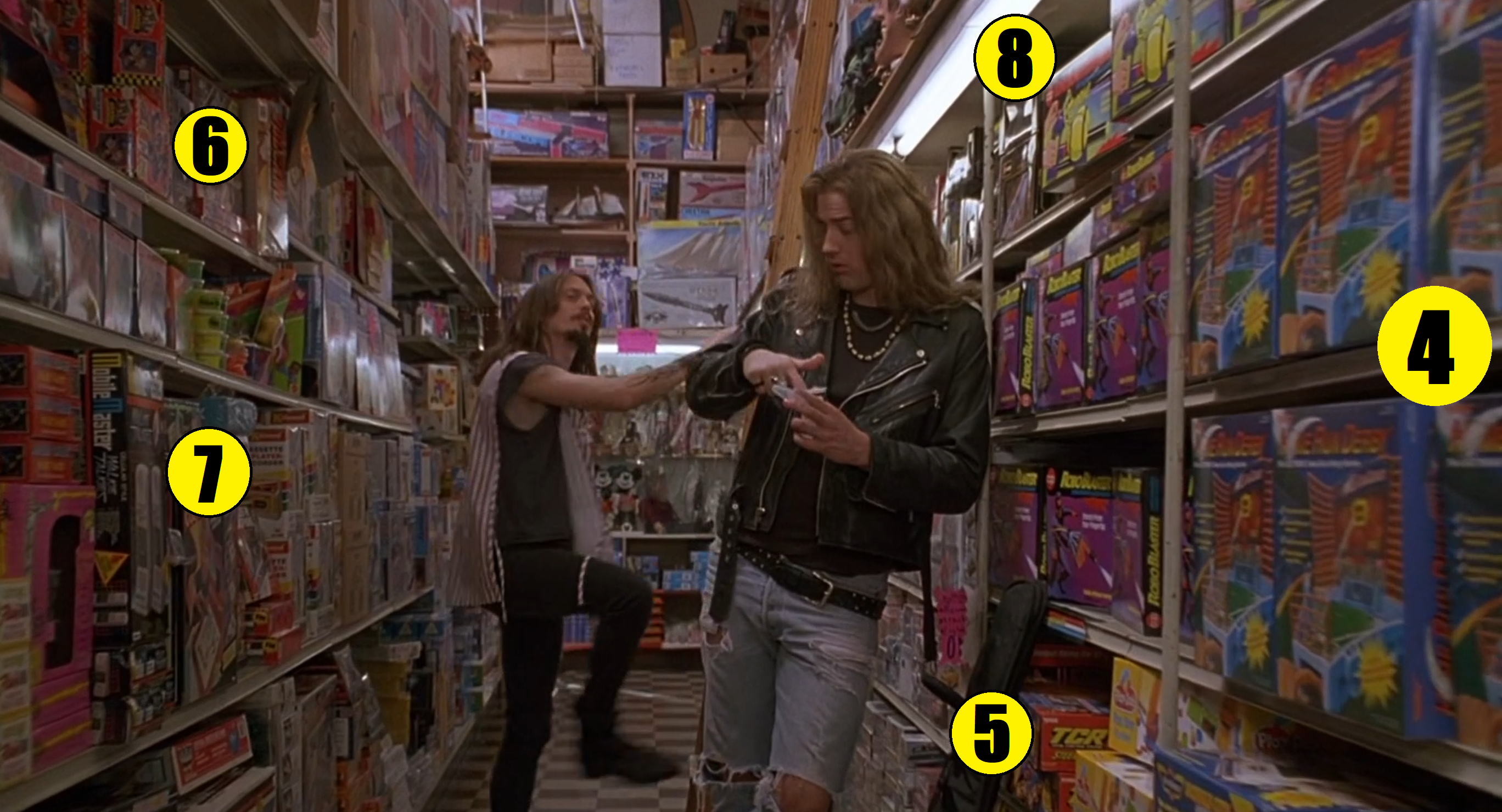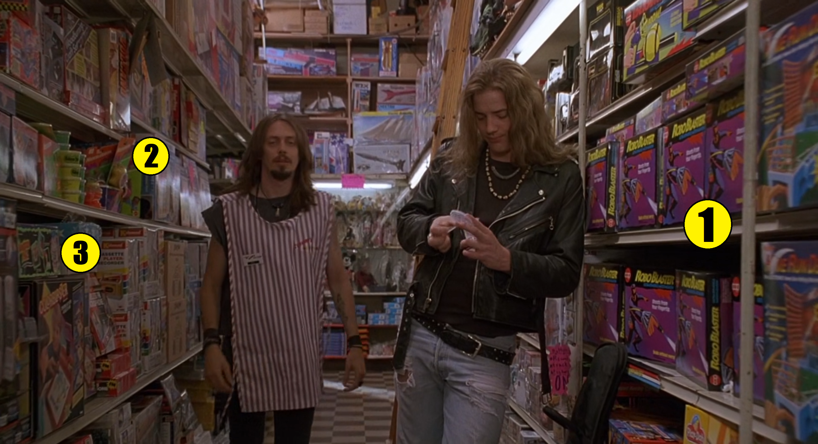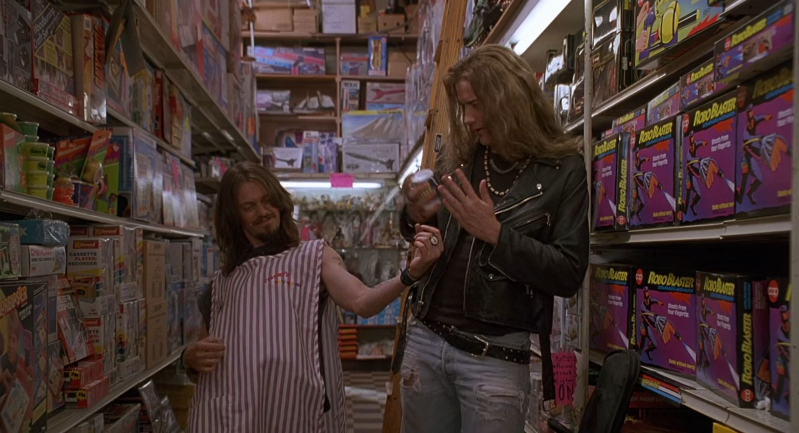 In case you weren’t paying attention, the entire premise of Airheads fell on the hands of this toy store and I’ll explain why. These boneheads were only able to take over a radio station, hold hostages and demand their record be played on the air thanks to Rex’s toy guns filled with pepper spray that he smuggled from his days at “Clowny’s Toy Town”. Rex was smart enough to stash a few of the guns (and some Crash Dummies dolls) before he tossed his apron at dweeby store manager Zachary and quit to serve full time at the altar of rock ‘n roll.