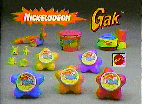 Nickelodeon and slime have been synonymous with each other since the days of You Can’t Do That On Television in ’79. For decades the corporation has made slime an evolving money maker. When squished around in it’s star shaped container, “Gak” made fart noises and we all know that joke never gets old. The name “Gak” was first used by Marc Summers on the TV show Double Dare when referring to the slime on the show. Of course “gak” was also a street term for heroin but apparently nobody gave a damn. Since ’92 there have been multiple variations of the squishy product which include Gak-In-The-Dark, Solar Gak, Smell My Gak, Gak Pack, Gak’s Alive and Gakoids.