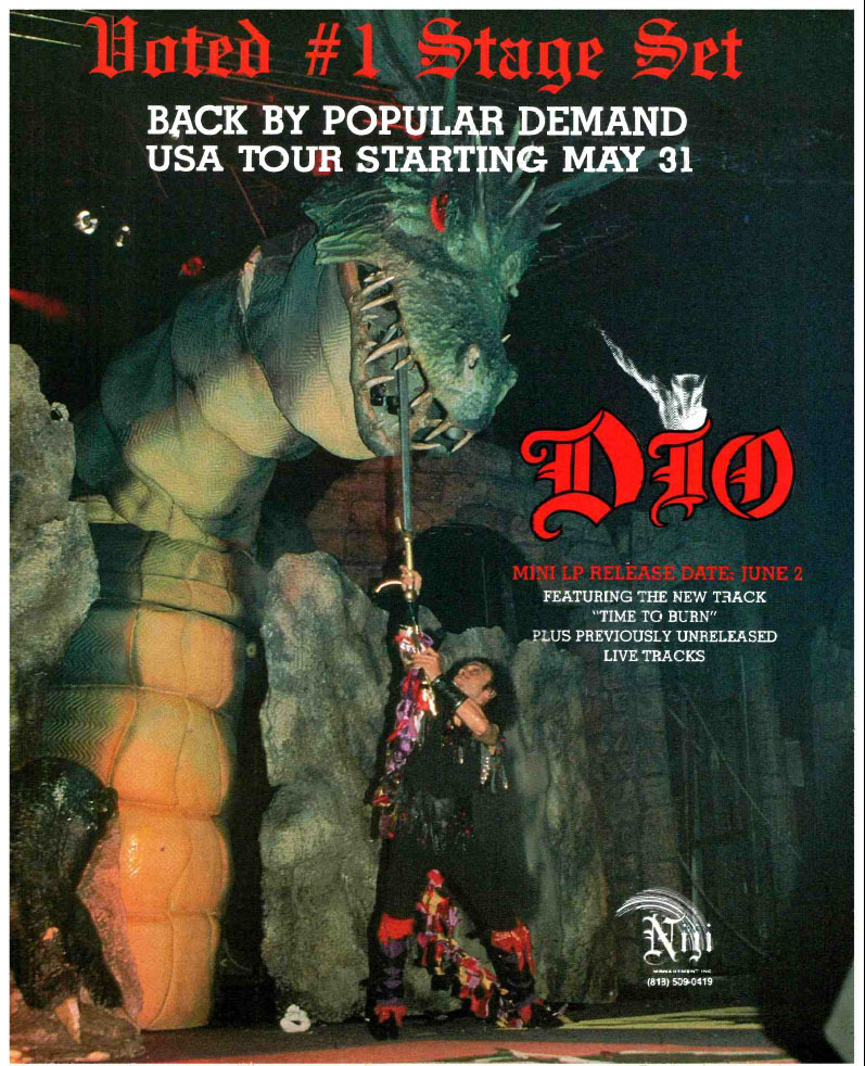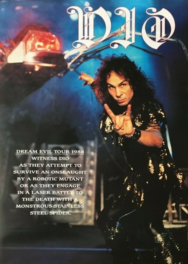 Dio was always known for elaborate stage props, especially when he broke the bank on the previous Sacred Heart tour as he unveiled a massive dragon on stage. According to Craig Goldy in a recent interview “Ronnie practically cut his profit margin in half bringing the fans an 18 foot fire breathing dragon. It really did have fire coming out of its mouth, lasers shot out of the dragon’s eyes, and wherever that laser would land an explosion would take place, both visual and audio. He didn’t hike up ticket prices for all that…. it was his way of giving back to the fans.”