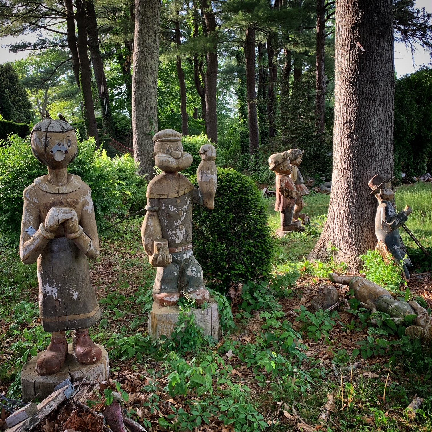 When they first appeared in the early 1990’s, the statues were a vibrant, welcome addition to the neighborhood. Parents would walk their kids up to the yard and peek through the gates in awe at the entertaining display. It became a known attraction in this little town. I know because I grew up not far from the house.