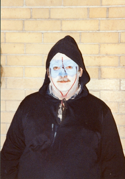 As I would find out a couple years later with more haunted house experience under my belt, while waiting in line at these types of places, the haunt workers like to walk around and stare or sneak up behind visitors to scare them. Even though I was with family and friends, this was a new concept that completely freaked me out. I couldn’t take my eyes off this one actor who had a ghostly face and just stood against a wall, staring at me the entire time. The others walking around didn’t bother me so much, but that one ghoulie old dude just standing there blankly…emotionless…those dead eyes right on me.