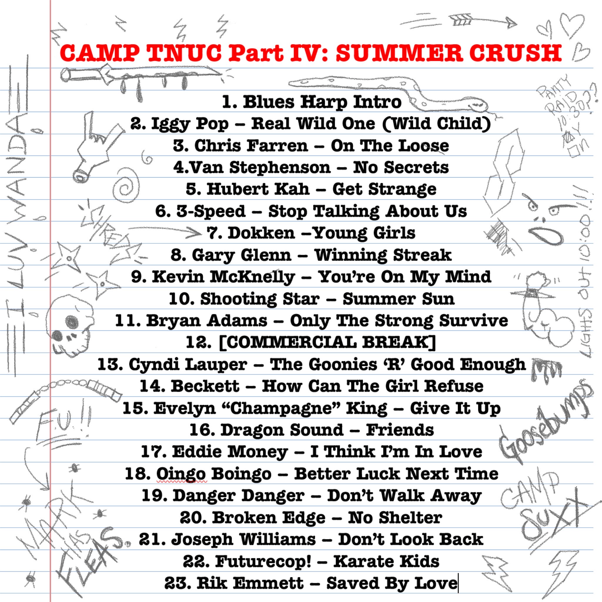 So there you have it folks. Summer crushes can transform your entire experience at Boner Camp Camp TNUC. So much that “Counselor T” has crafted the next mixtape in honor of these exciting moments. So ease back in your favorite pool floatie, grab a cold Zima and crank up our 4th summer camp mixtape: Camp TNUC Part IV: Summer Crush as you think about your version of a Cindy Davenport.