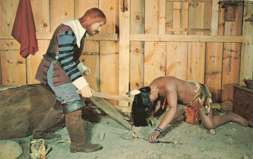 If that wasn’t enough, several years following the business closing, an artist named Sam Durant acquired one of the scenes from the defunct museum. He transformed the pieces into a exhibit titled “Scenes from the Pilgrim Story: Myths, Massacres and Monuments” which was displayed in a gallery at the Massachusetts College of Art and Design in 2006.