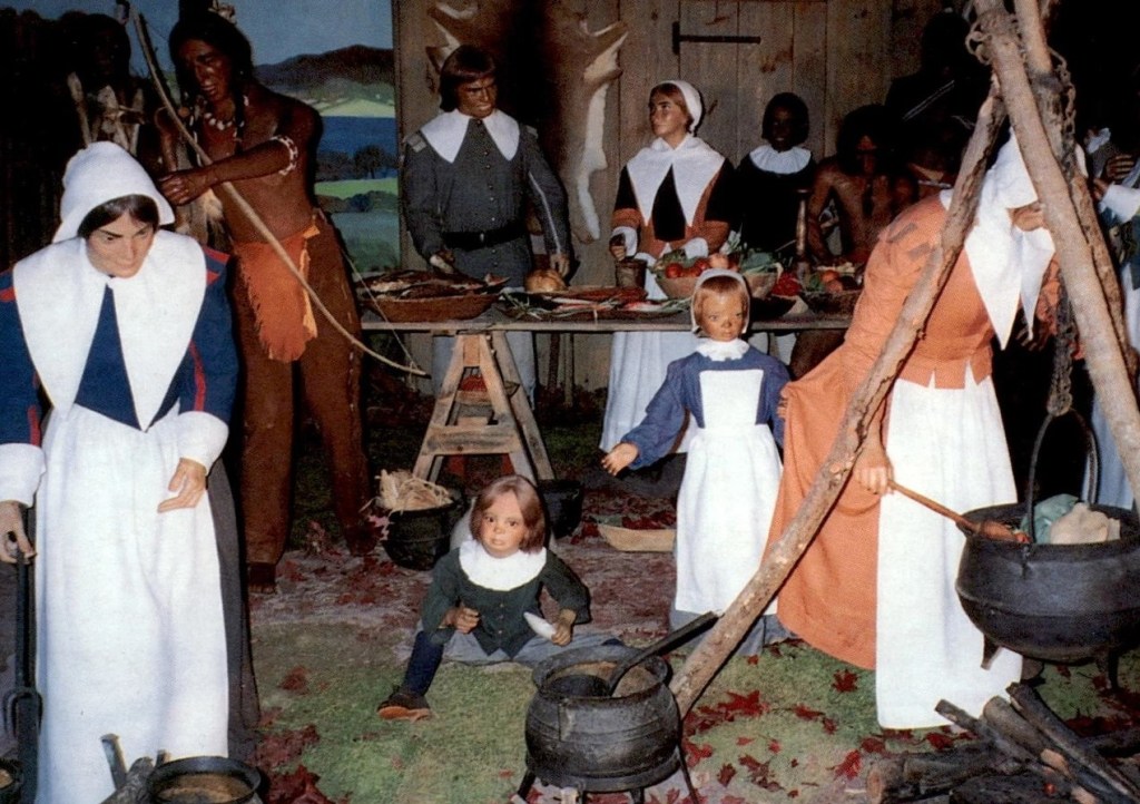 As seen in the following postcards from the museum is a glimpse at the harsh conditions of pilgrims and the Native Americans. The nightmarish terror really comes into play in the facial expressions and dead-eyes of the wax figures. Just imagine the lights turning off and being locked inside the Plymouth Wax Museum like the plot of 1988’s Waxwork.