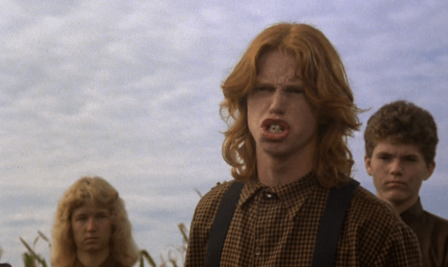 True confession. When I was a pint sized TNUC, a good friend of mine lived on a farm with a massive cornfield on Martha’s Vineyard. Both of us watched this movie repeatedly so naturally we’d play “Children of the Corn” in the cornfield during the summer. All this usually meant was grabbing knives from his parent’s kitchen and chasing each other through the rows. One of us would be Issac, the other Malachai. It might sound sick, but I think pretending to be this rad redhead provided the “release” I needed during those preteen days.