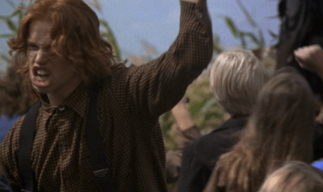 True confession. When I was a pint sized TNUC, a good friend of mine lived on a farm with a massive cornfield on Martha’s Vineyard. Both of us watched this movie repeatedly so naturally we’d play “Children of the Corn” in the cornfield during the summer. All this usually meant was grabbing knives from his parent’s kitchen and chasing each other through the rows. One of us would be Issac, the other Malachai. It might sound sick, but I think pretending to be this rad redhead provided the “release” I needed during those preteen days.